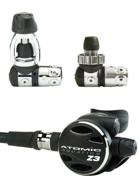The Z series is Atomic Aquatics signature compact and economical regulator package. The Z3 offers top performance and ergonomics with the 2 year/ 300 dive service interval and lifetime guarantee of all Atomic regs. The first stage features the Jet Seat high-flow piston and factory seal to stop outside contamination and has 7LP ports and 2 HP fixed ports. The second stage has the patented Automatic Flow Control and black PVD coated Atomic Comfort Swivel. Optional colour kits available. Nitrox ready for 40%.