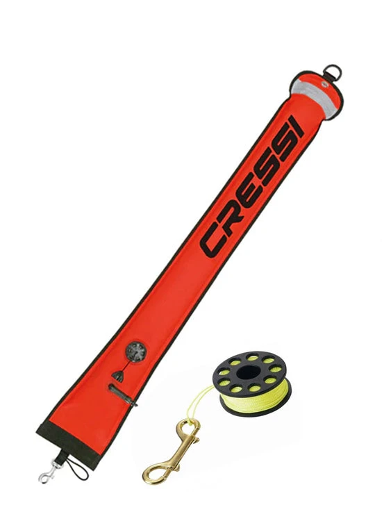 The Cressi All In One SMB Pack consists of a Cressi orange surface marker buoy with a 30m speel and double ended bolt snap, conveniently sold in a combo package!