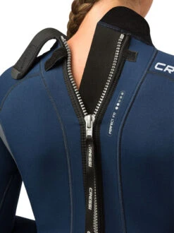 The suit doesn’t use any zips but instead uses the common closure system with 2 buttons in the groin area, avoiding the presence of any braces so the rib cage is free to expand.