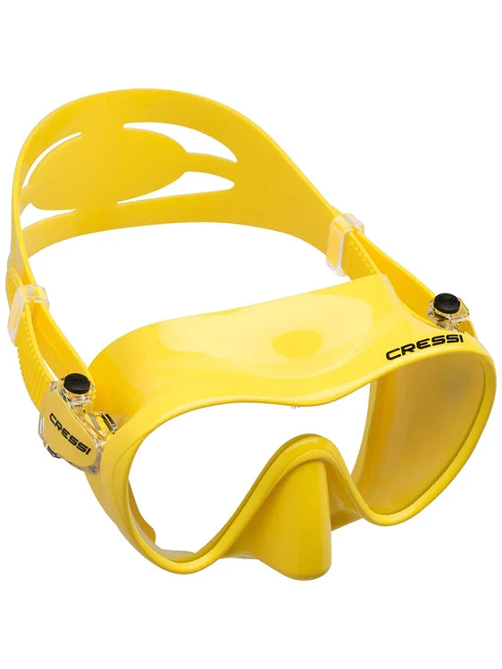 The Cressi F1 Mask is an ultra low volume frameless mask, perfect for scuba divers and snorkelers alike. It comes in various different colors: black, blue, lilac, pink, silver, white and yellow, making it easier for matching with other pieces of equipment.