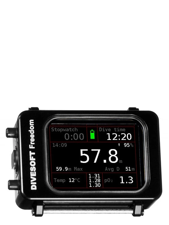 The Freedom Advanced Bottom Timer was designed to meet the specific requirements of technical divers using ratio deco for decompression calculations. Built with strength and resilience in mind, the Freedom Advanced Bottom Timer has an operational depth of 300m, but it’s robust heavy-duty aluminum case has been tested even to depths as deep as 600m! The full colour, clear TFT display with extra large digits means that poor visibility isn’t going to set you back, even without a mask on you can read everything you need to know- the Freedom Advanced Bottom Timer was designed to ensure absolute safety even in extreme circumstances. With a dive profile that is visible in real time during the dive, that is recorded to the device’s logbook, and can be downloaded to your computer mobile phone with the USB, you can analyze your profiles in great detail post dive.