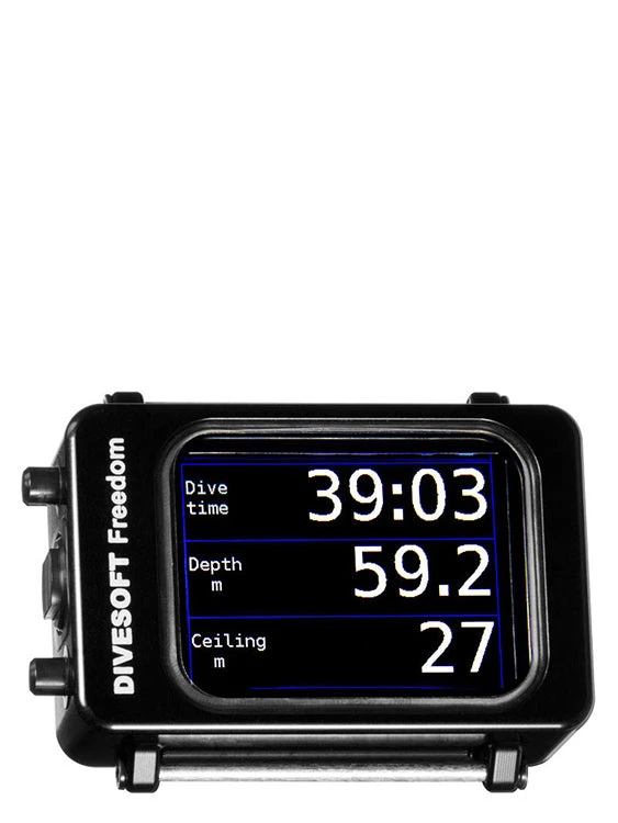 The Freedom CCR computer update is the top dog when it comes to freedom decompression computers. Alongside all of the previously mentioned functions, the Freedom CCR includes online decompression calculation for CCR, you can connect the Freedom CCR with up to 3 oxygen sensors of your re-breather. The P02 value is displayed on the primary screen, then with separate screens for each sensor (including the sensor voltage), the readings couldn’t be more clear, concise and easy to understand at depth. Fixed set point and SCR modes are also available for different variations of rebreathers. There are up to 9 gas mixtures available, including helium mixtures, and 8 additional mixes for diluents, bailout and open circuits.