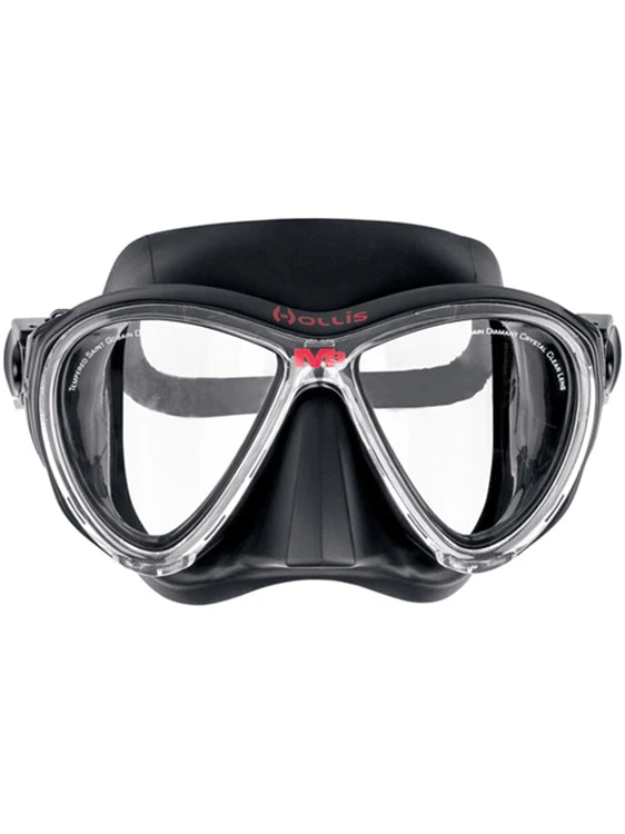 The low profile Hollis M3 prescription dive mask is a twin lens rigid frame mask with extra clear glass lenses with great optical qualities. The lenses have a lower iron content compared to traditional dive mask lenses, reducing the green tint, which improves colours and visibility.