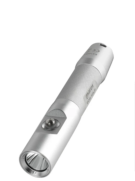 The Mares Eos 10LR dive torch is the successor of the Eos 10R. The anodised aluminium torch is rechargeable and packs a punch with a 1000 lumens and a 90 minute run time! It’s a spot beam torch with a narrow beam angle of just 12 degree. Ideal for looking under ledges and in crevices with a penetrating intensive beam.