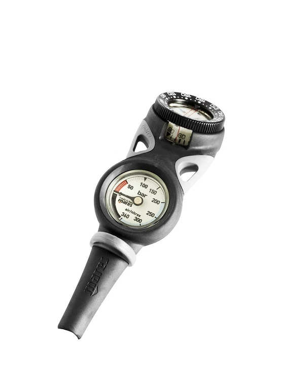 The Mares Mission 2C Twin console includes an easy to read pressure gauge rated to 300 bar, plus a compass to ensure you never lose your bearings on a dive.