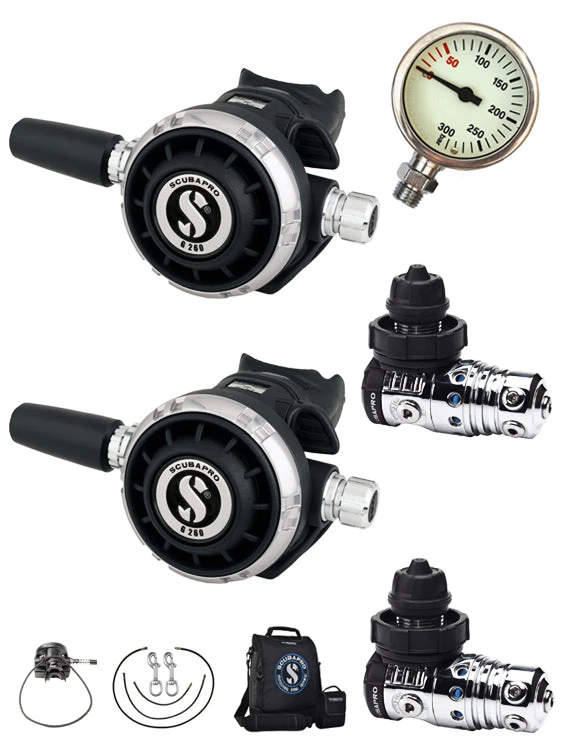 The Scubapro MK25 Evo / G260 Tech Diver Regulator Set is the preferred twin tank regulator setup of cave divers around the world.