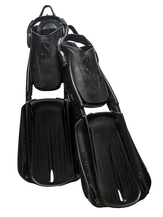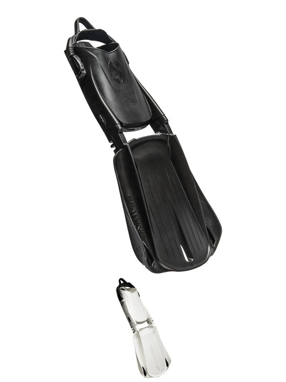 For frog kicking, there is an improvement in manoeuvrability due to the new twin-tip winglets. The innnovative two piece design with separate blade and foot pocket means you can switch between foot pockets (full foot or boot fit). It also means the fins are easy to pull apart and pack for travel!