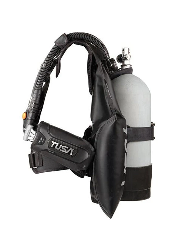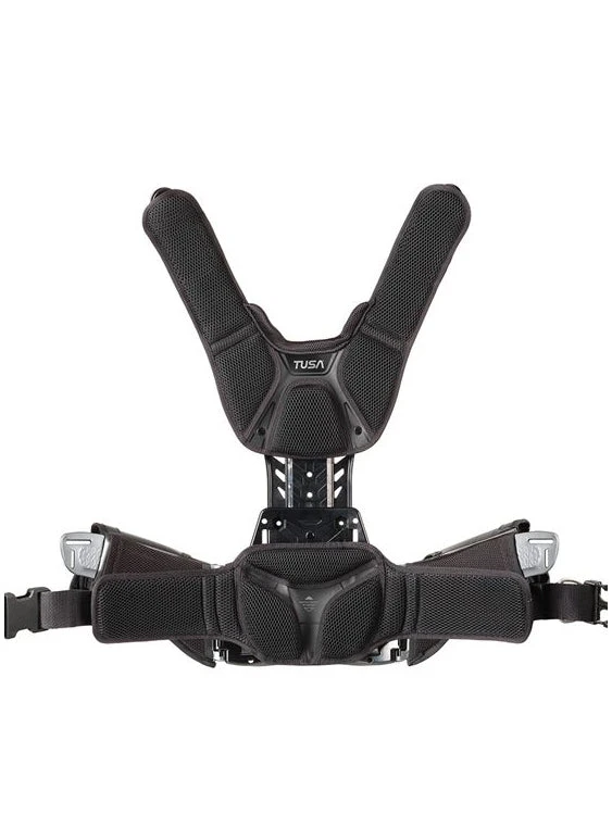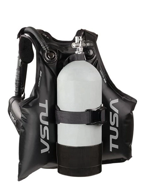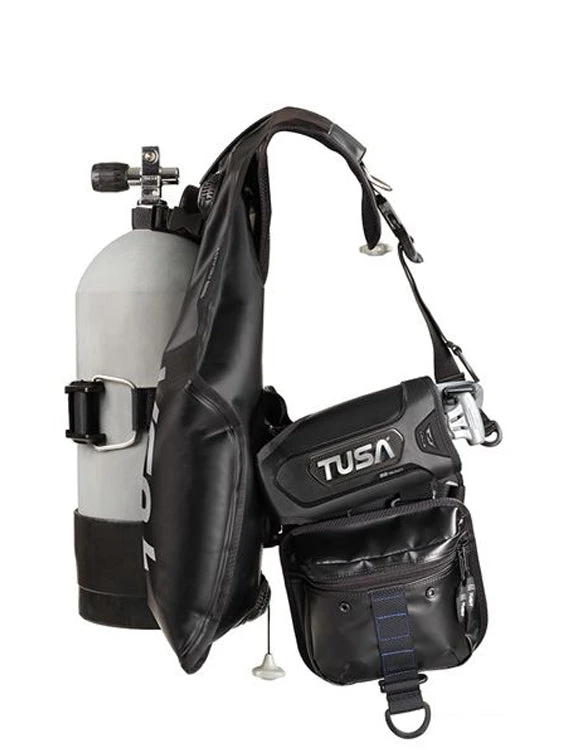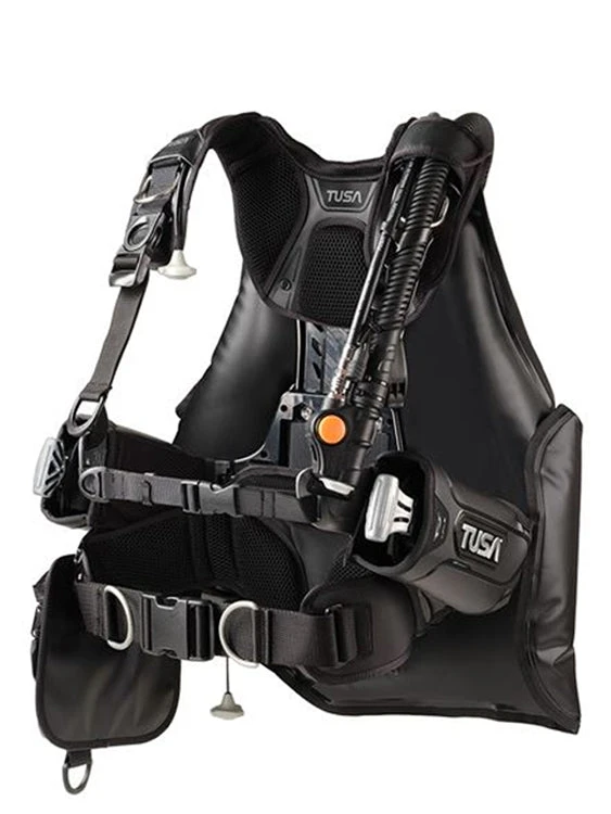 The TUSA BB React BCD is a top of the line back inflation BCD that features an improved tank buckle release and bladder shape as part of a transformed harness system. This improved design holds the weights closer to the body for more comfort and stability, eliminating tank roll.