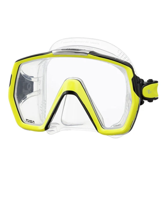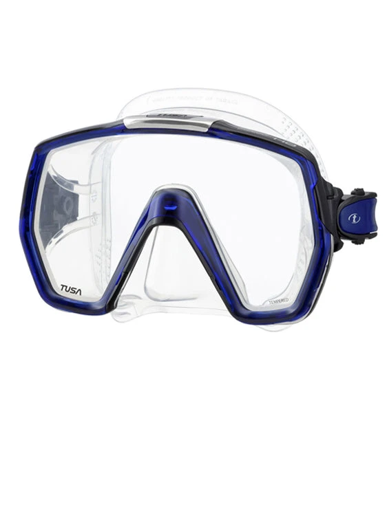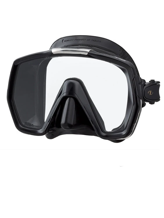 The TUSA Freedom HD scuba diving mask is one of the largest single lens dive masks on the market! It has a Freedom skirt with round edges for extra comfort and an excellent seal! The field of vision of this mask is incredibly wide and has specially designed 180 degree buckles to fit a diverse range of faces!